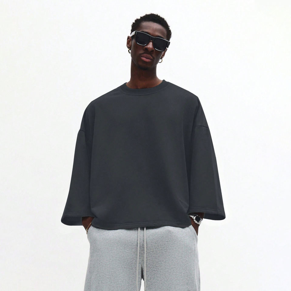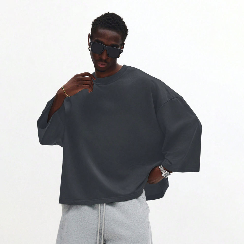 Custom Print Logo Oversize Solid Front Casual Sweat High Quality Breathable Anti-pilling Men's Oversize Drop Shoulder Sweatshirt