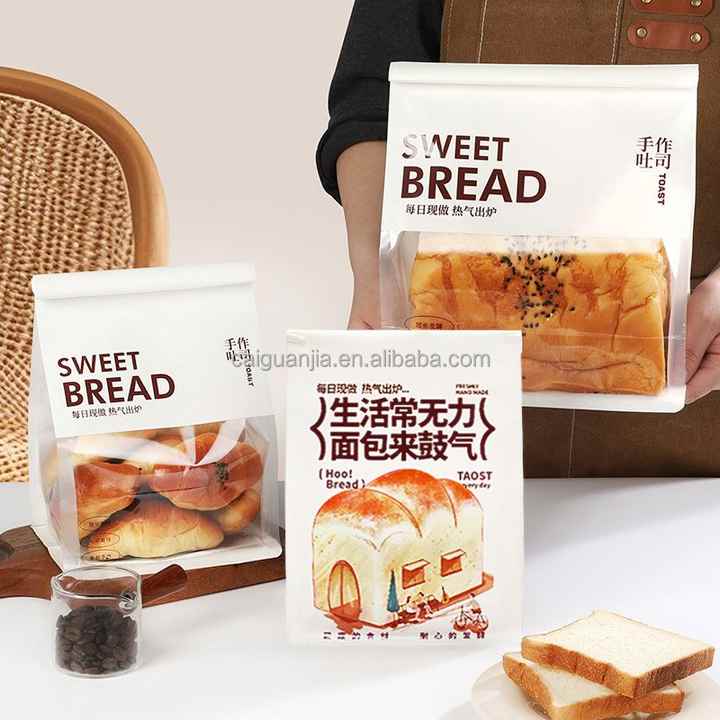 Custom Print Resealable Kraft Paper Packing Lunch Bags for Buns Snacks Cake Take Away Packaging Bag
