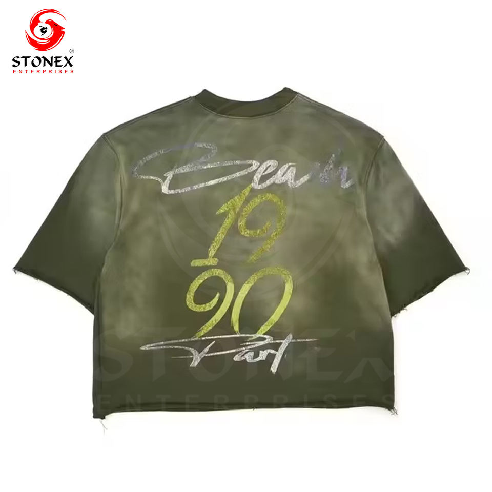 Custom Print Summer Vintage Acid Wash Sun Faded Cotton Graphic Tee Raw Boxy Fit Cropped T Shirt Men