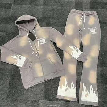 Custom Print logo Stacked Sets Sweat Suits Men's Sets Two Pieces Flare Pants Sets Hoodies Tracksuits Sweatsuit for Men