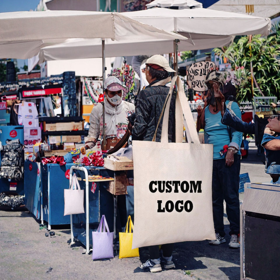 Custom Printed 12oz Thickness Natural White Organic Cotton Handled Tote Bag Eco-Friendly Recycled for Beach Shopping Features