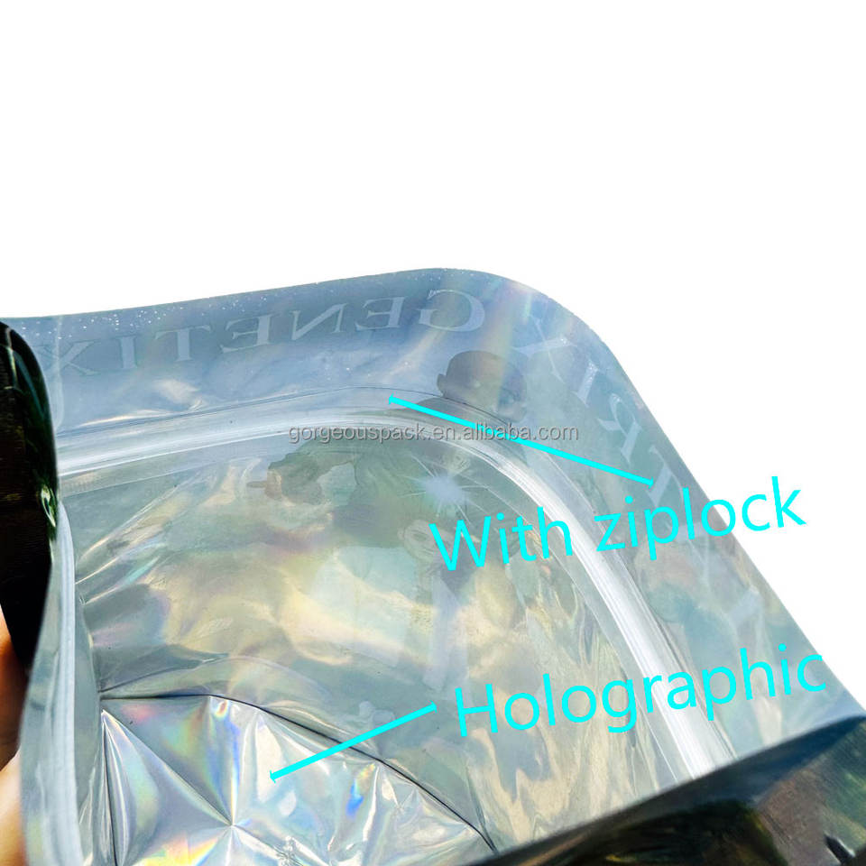 Custom Printed 3.5g Holographic Child Smell Proof Mylar Bags Aluminum Foil Moisture Proof Resealable Food Pet Food Jelly