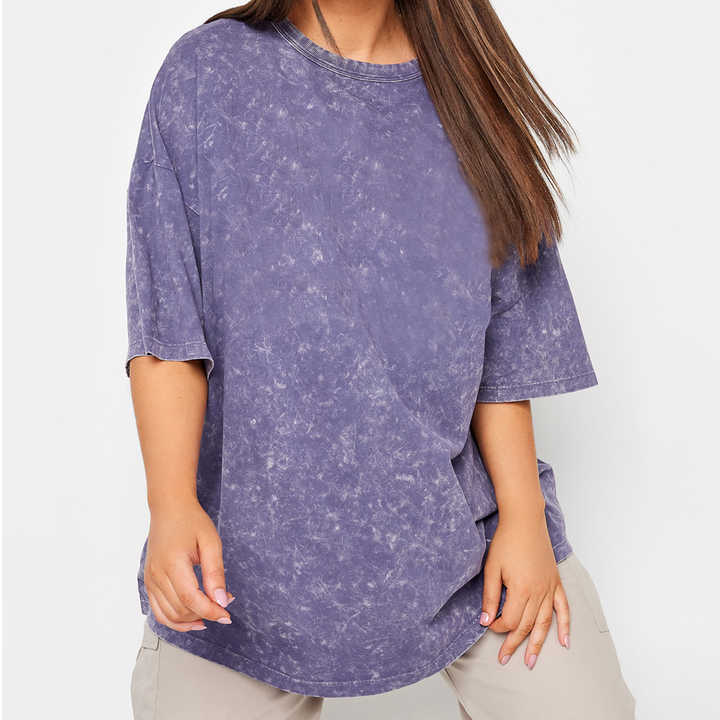Custom Printed Acid Wash Cotton Women's Tops Comfortable Crewneck Tee Shirts Eco-Friendly Casual Clothing Hole Button Appliques
