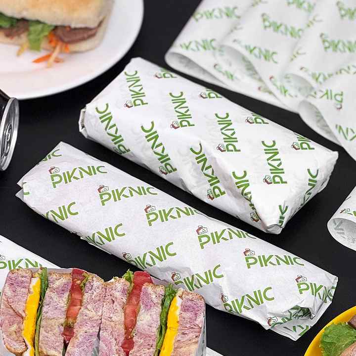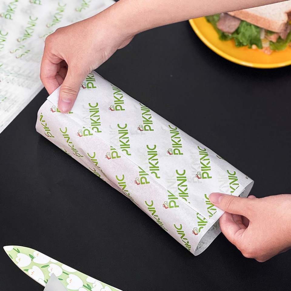 Custom Printed Coated Eco-Friendly Greaseproof Food Grade Wrapping Paper for Sandwich Burger Dessert Bread Recyclable Wax
