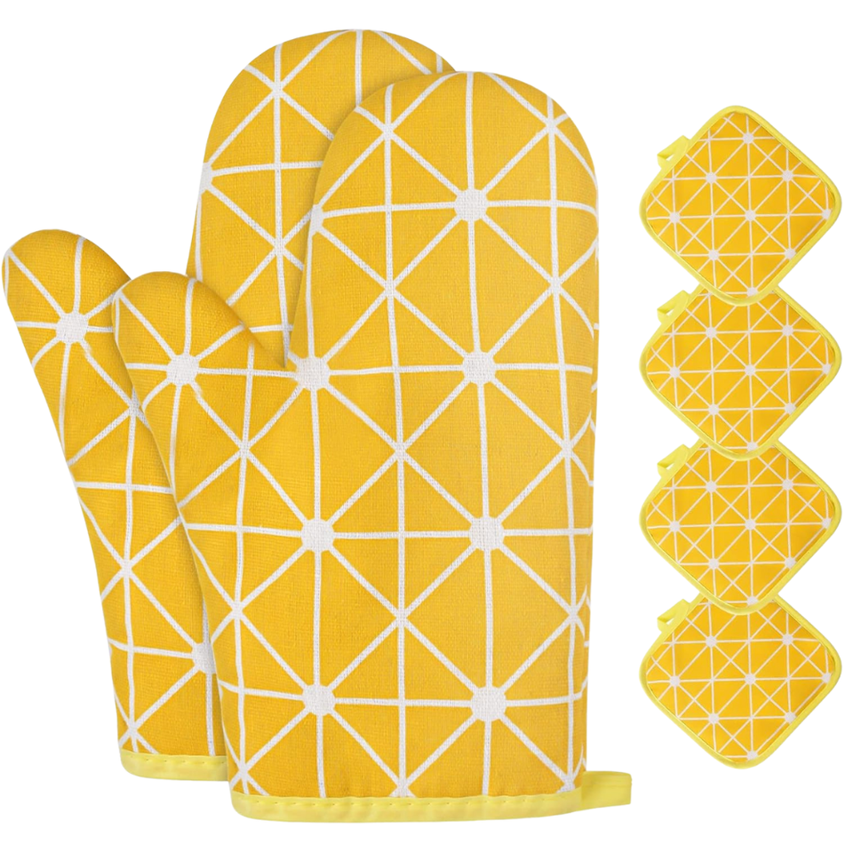 Custom Printed Cotton Oven Mitts & Pot Holder Set - Microwave Safe, Heat Resistant, Washable BBQ & Kitchen Cooking Gloves