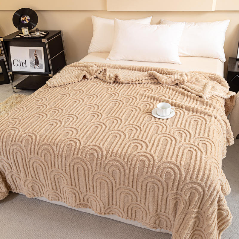 Custom Printed Cozy Woven Jacquard Luxury Bedding Soft Plush Fleece Throw with Solid Stripe for Bed or Sofa Use in Winter