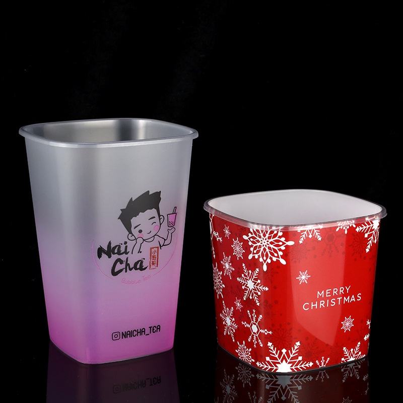 Custom Printed Disposable Biodegradable PET PP Double Wall Plastic Cups 8oz 12oz 16oz Boba Tea Hot/Cold Beverages 90mm Lids