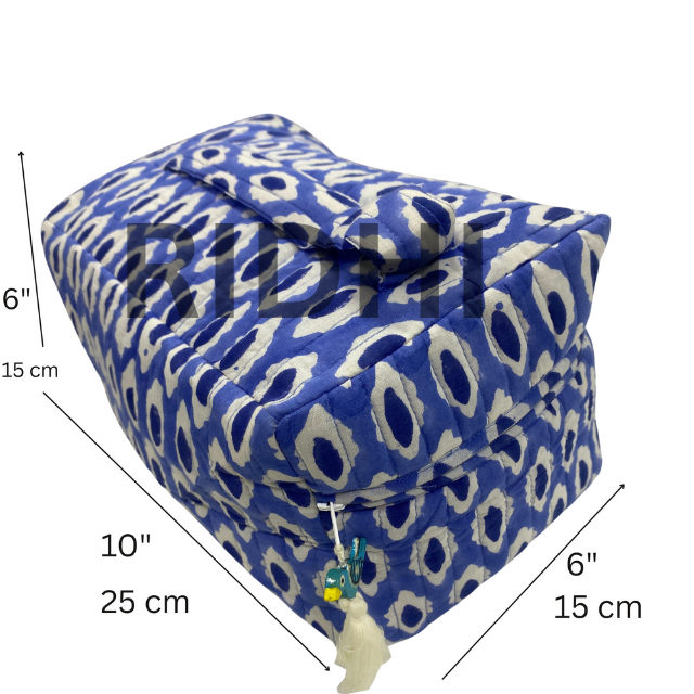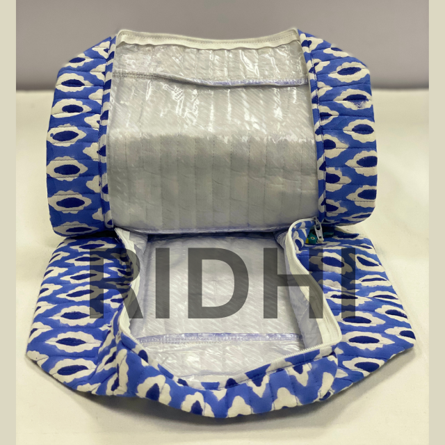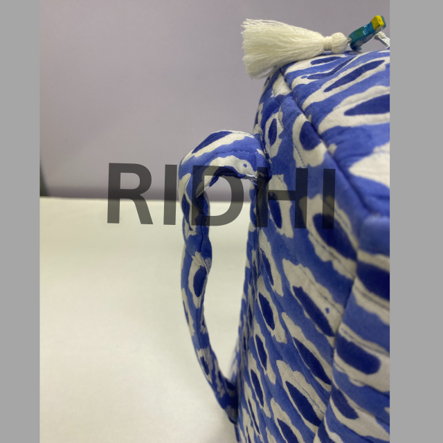 Custom Printed Eco-Friendly Indigo Ikat Cotton Quilted Zipper for Bag Front Handle Reusable Travel Grocery Cosmetic Large