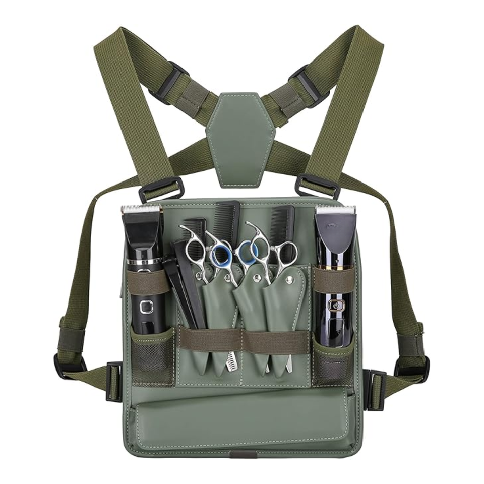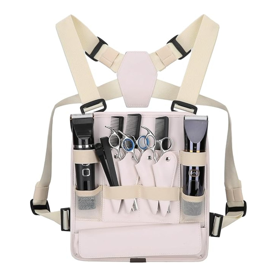 Custom Printed Ergonomic Leather Barber Holster Bag Hand Free Hairdresser Tool Organizer for Salon Professionals