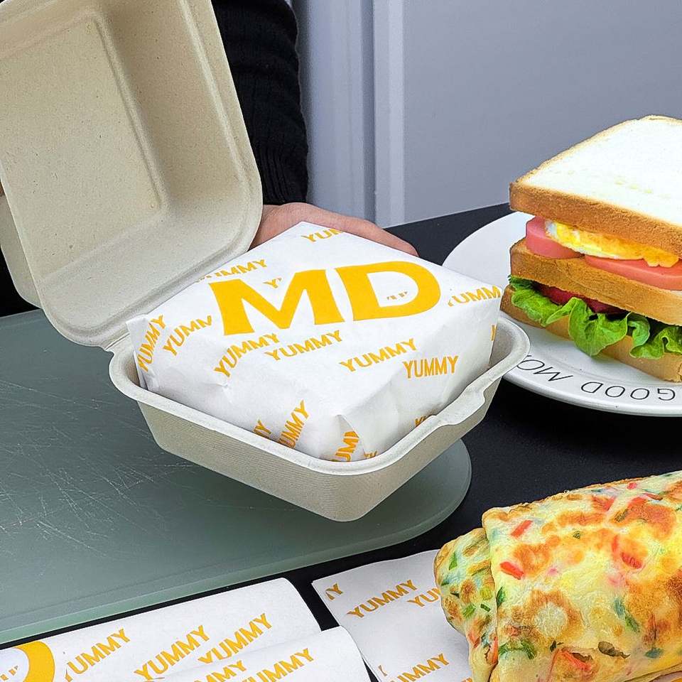 Custom Printed Food Grade Biodegradable Recyclable PE Coated Single-Sided Greaseproof Sandwich Burger Wrapping Paper