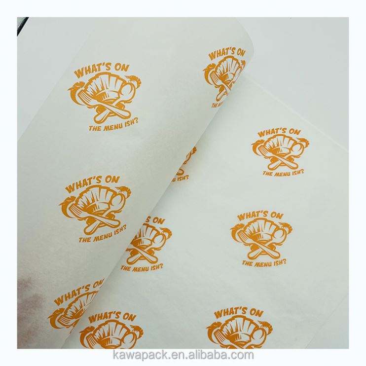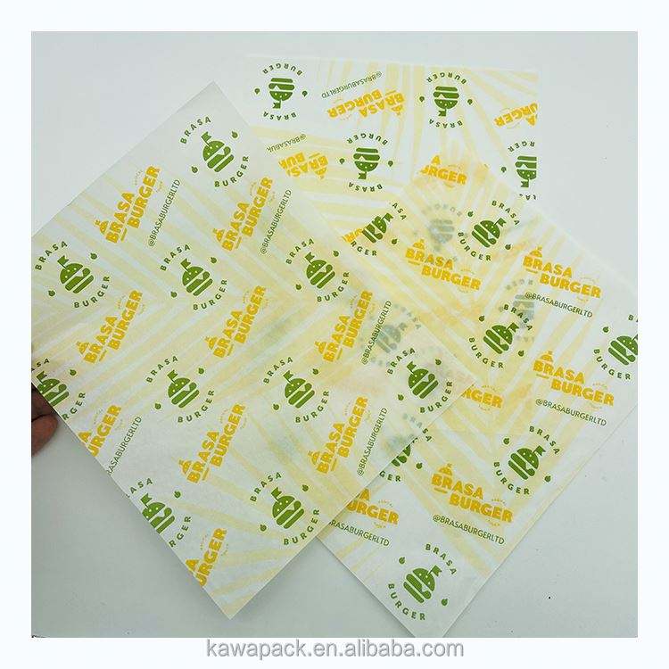 Custom Printed Food Grade Greaseproof Hamburger Wrapping Paper 30g 35g 40g Sandwich Deli Packaging Sheets for Fast Food