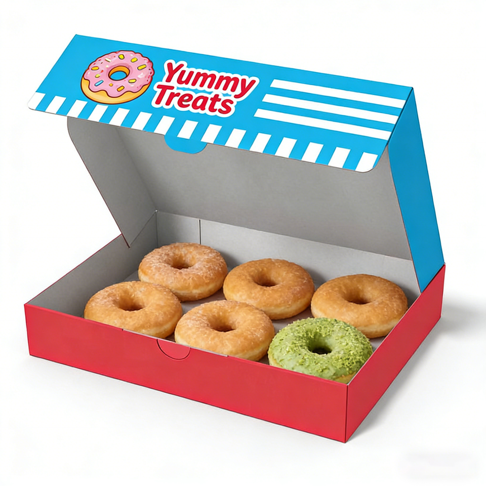 Custom Printed Food Grade Paper Packaging Boxes Eco Friendly Foldable for Cake Cookie Bread Pastry Donut Macaron