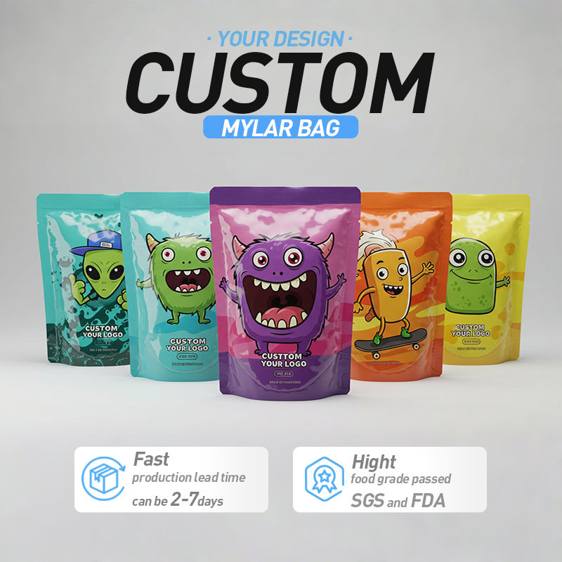 Custom Printed Food Grade Plastic Edible Cookie Packaging Stand up 3.5 Mylar Resealable Bags