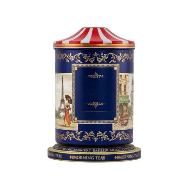 Custom Printed Food-Grade Cylinder Tinplate Container with Matte Finish Recyclable Music Bell Style for Tea Packaging