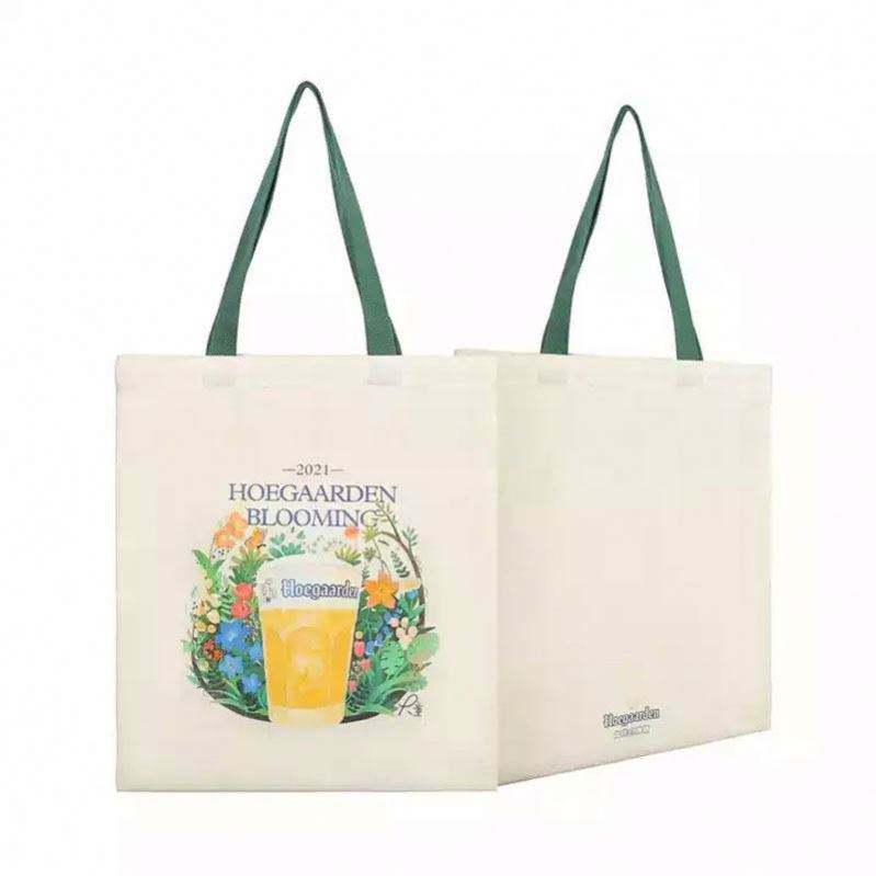 Custom Printed Full Color Eco Recycled Natural Canvas Tote Bag with Zipper and Custom Logo