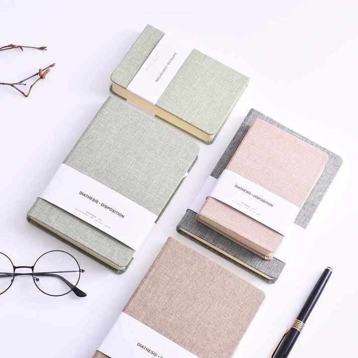 Custom Printed Hardcover Thick Cloth Notebook Lay Flat Hardbound Cover Linen Journal Promotion Diary School Supplies