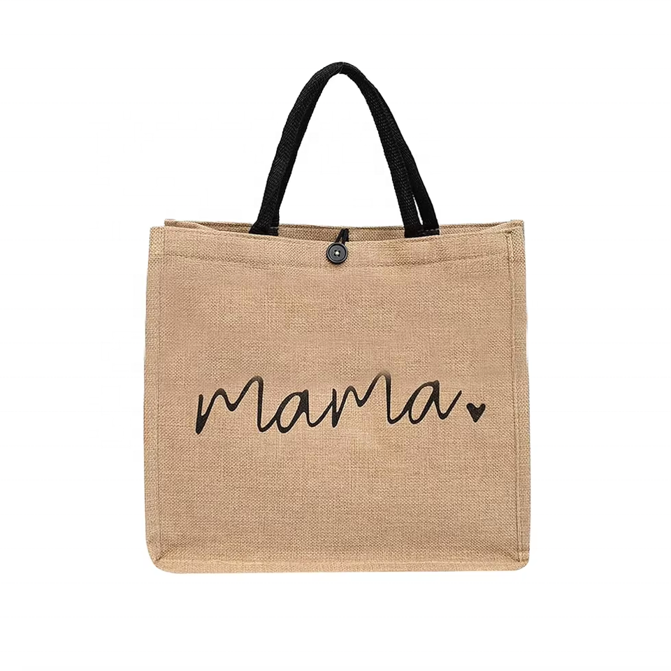 Custom Printed Jute Shopping Bag natural fabric eco friendly tote jute bag for beach gifting wedding favor promotional events