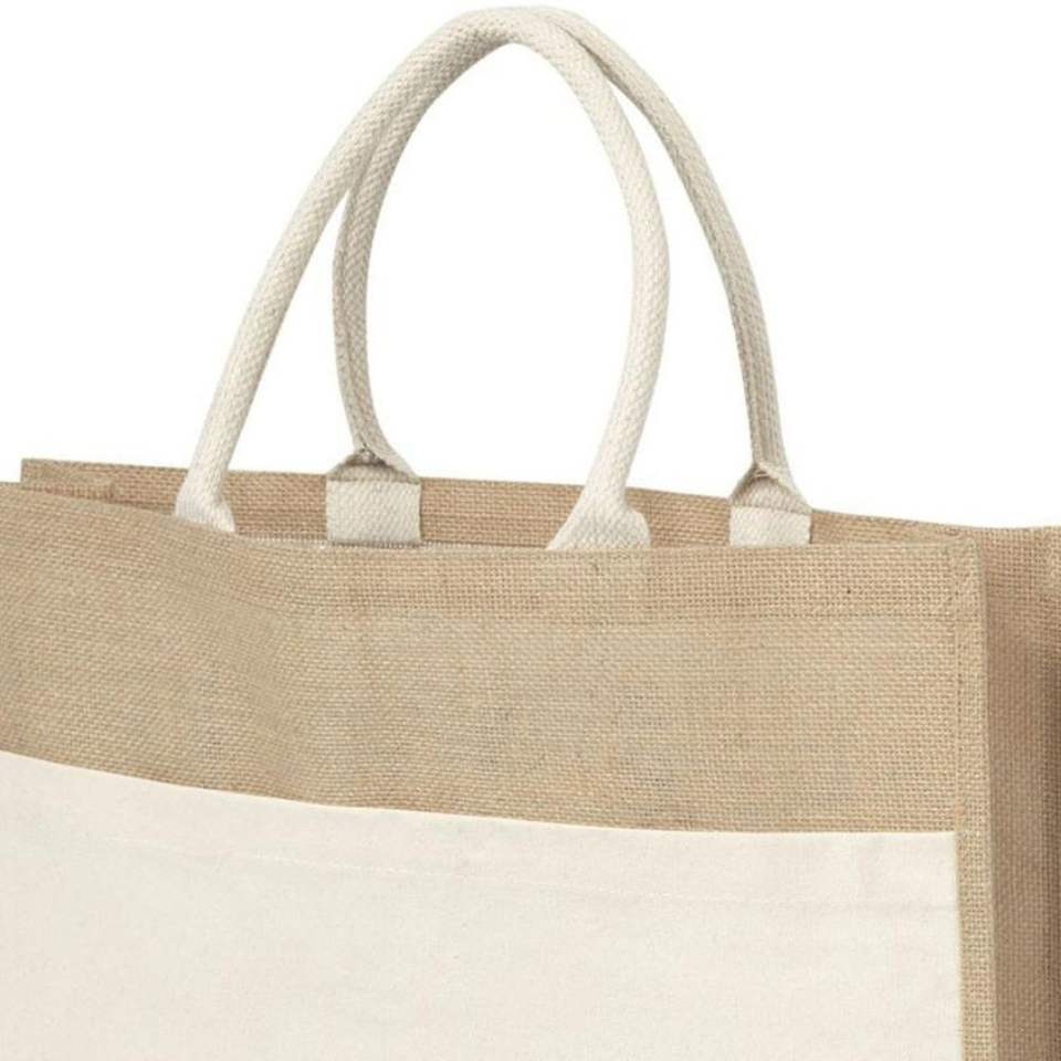Custom Printed Jute Tote Bags with Ribbon Handle and Canvas Front Pocket Reusable Natural Bags Gifts Shopping Bag Wholesale OEM