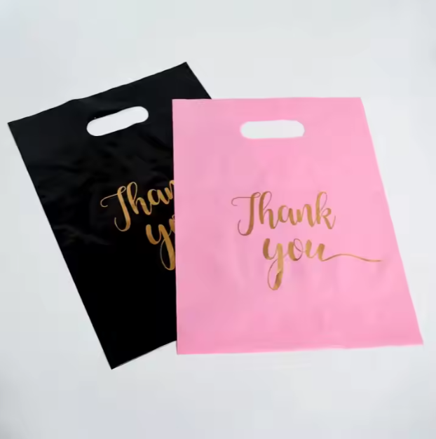 Custom Printed LDPE/HDPE Die Cut Handle Purple Color Thank You Plastic Carrier Gift Shopping Bags for Retail Small Business
