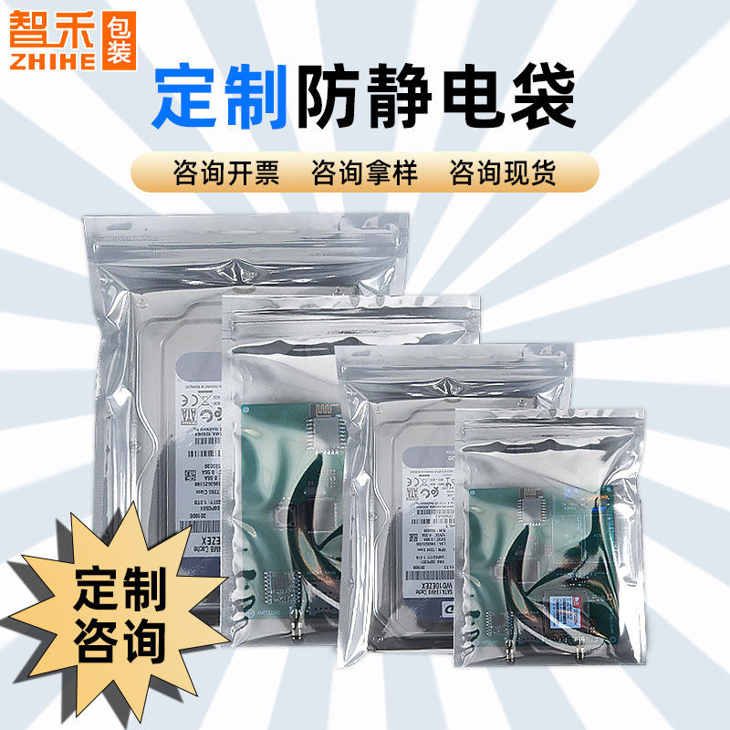 Custom Printed LED Tube Shielded Flat Bags Memory Hard Drive Packaging Graphics Card Anti Static Self Sealing Bags Industrial
