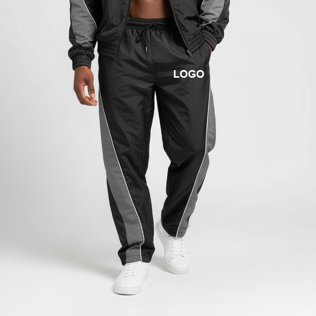 Custom Printed Logo 100% Nylon Color Block Panelled Washed men's pants Training & Gym Wear Elastic Waistband Trackpants For Men