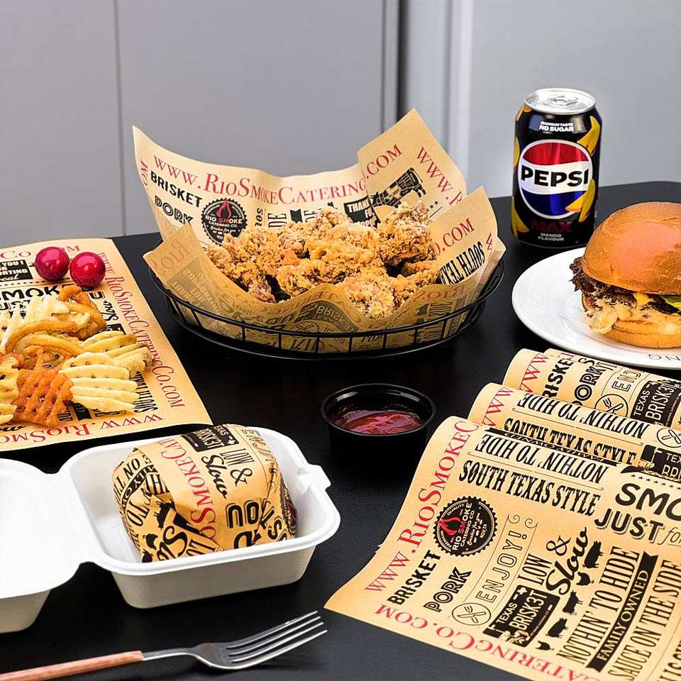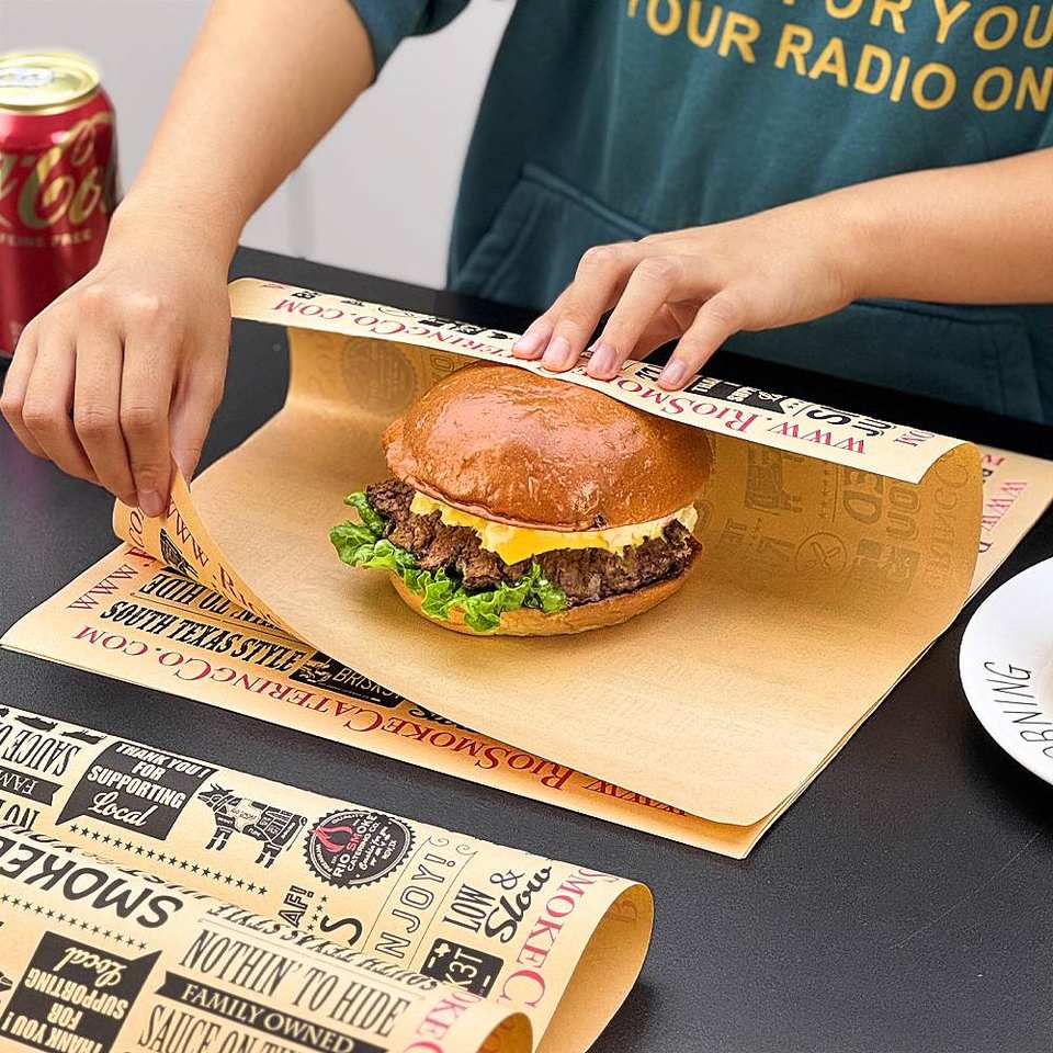 Custom Printed Logo Biodegradable PE Coated Single Side Grease Proof Food Wrapping Paper for Sandwich Burger Fast Food