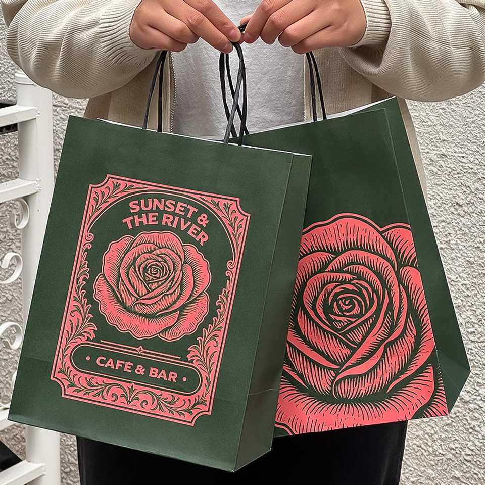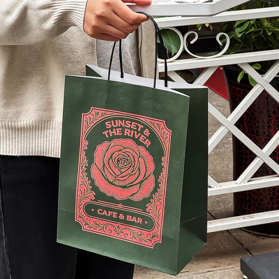 Custom Printed Logo Eco-Friendly Biodegradable Handle Bag Coffee Food Takeout Kraft Paper Shopping Bags Packaging