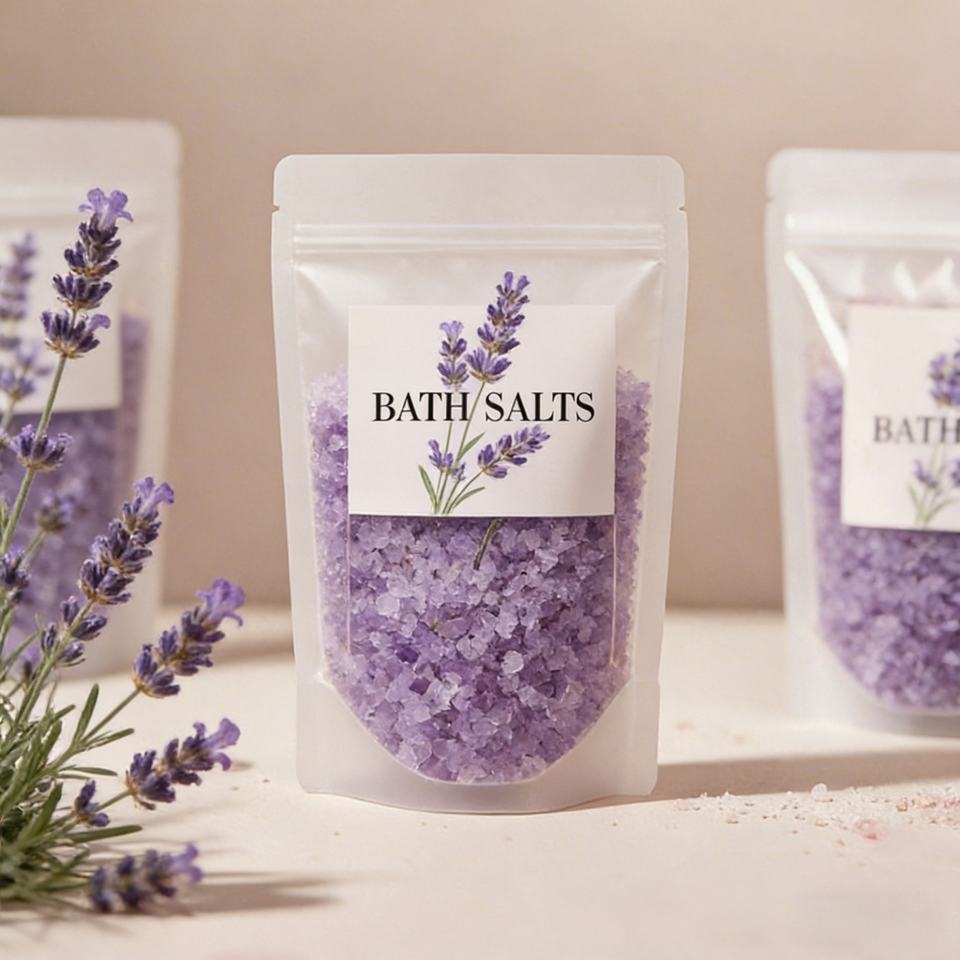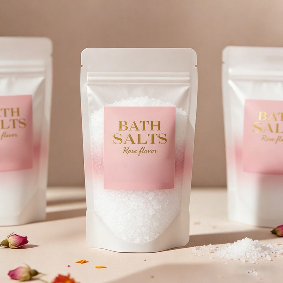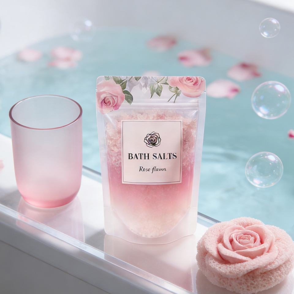 Custom Printed Logo Rose Salt Stand up Bag Resealable Stand up Pouch Rose Salt Body Scrub Packaging Soap Bar Bag with Ziplock