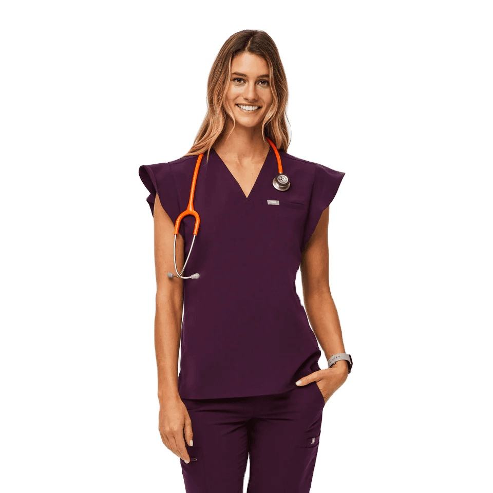 Custom Printed Luxury Pink Cotton Short Sleeve Winter Style Scrub Tops Women Private Label Nurse Uniforms Wrinkle Hospital