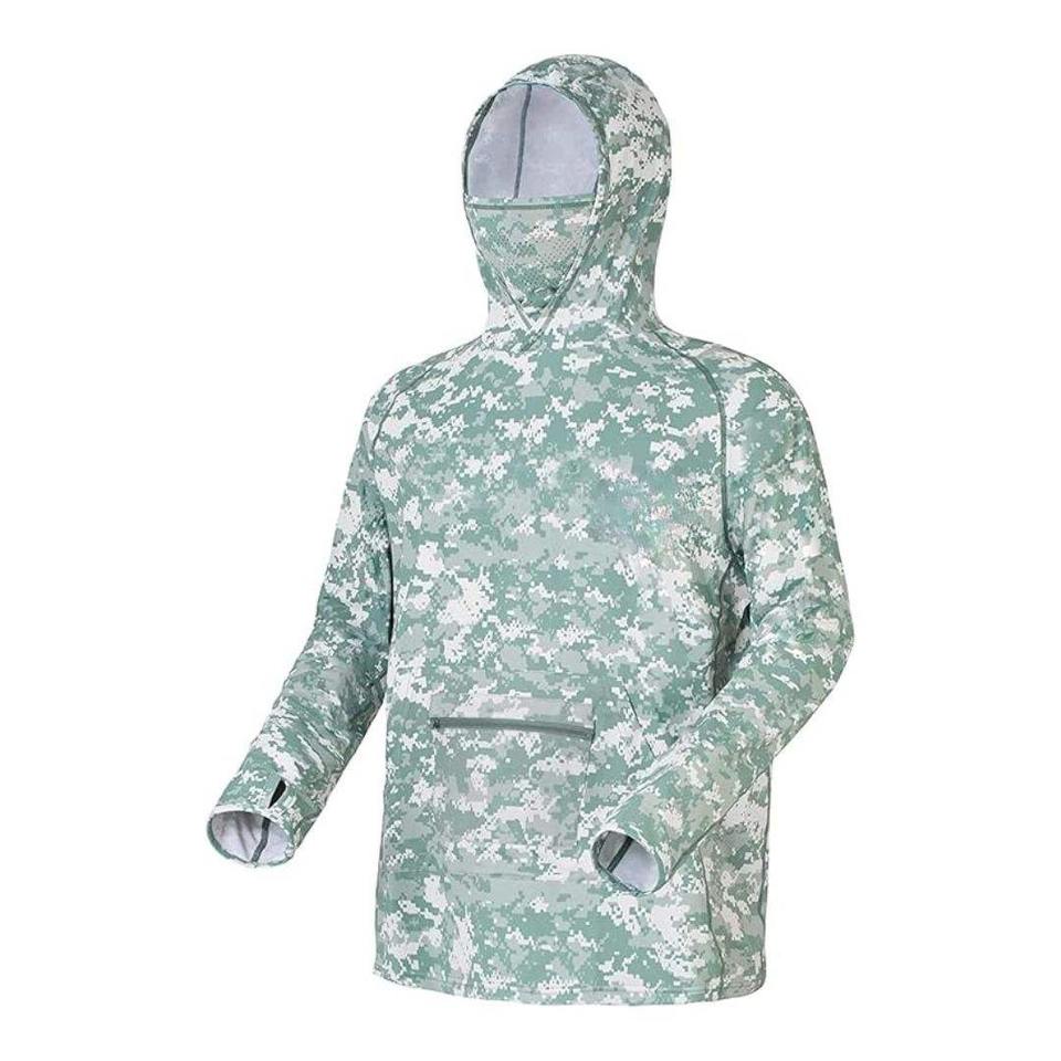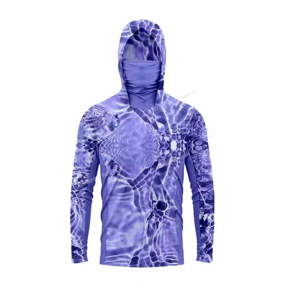 Custom Printed Men's Fishing Hoodie High Quality UV Protection Long Sleeve Shirt with Waterproof Hood Neck Gaiter 100% Polyester