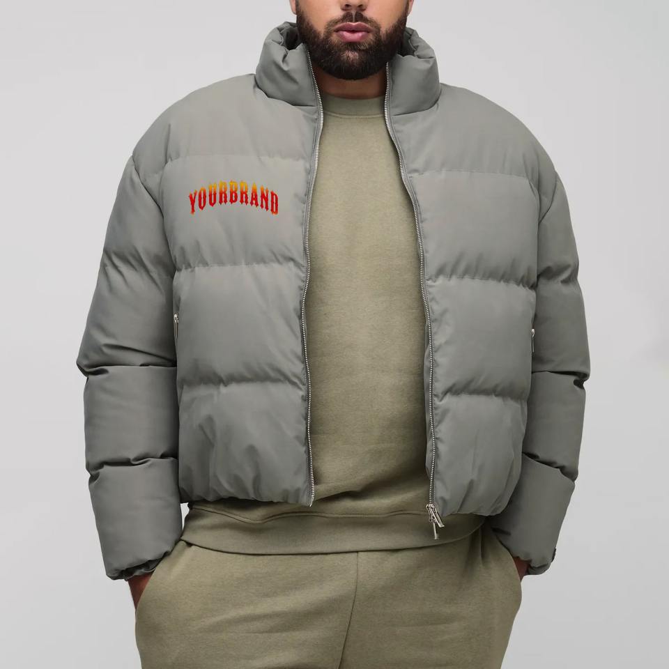 Custom Printed Men's Winter Jacket Padded Stand Collar Zipper Windbreaker with Hood Warm Puffer Jacket