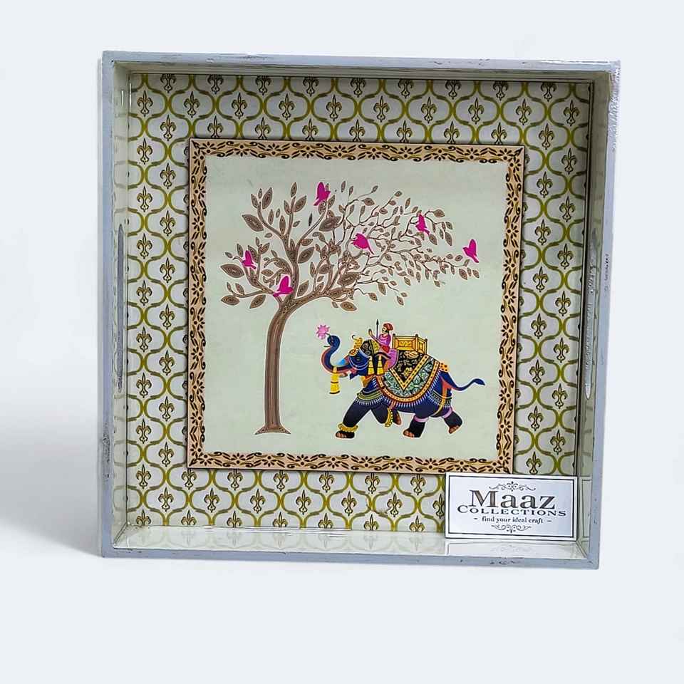 Custom Printed Modern MDF Wooden Christmas Tray Enamel Coating Eco-Friendly Floral/Fruit Design Square Handle Indian