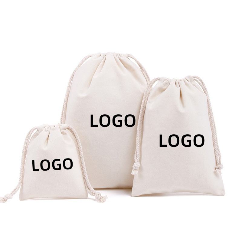 Custom Printed Organic Cotton Drawstring Bag Eco Friendly Small Gift Pouch Reusable Packaging Bag for Cosmetic Jewelry Use