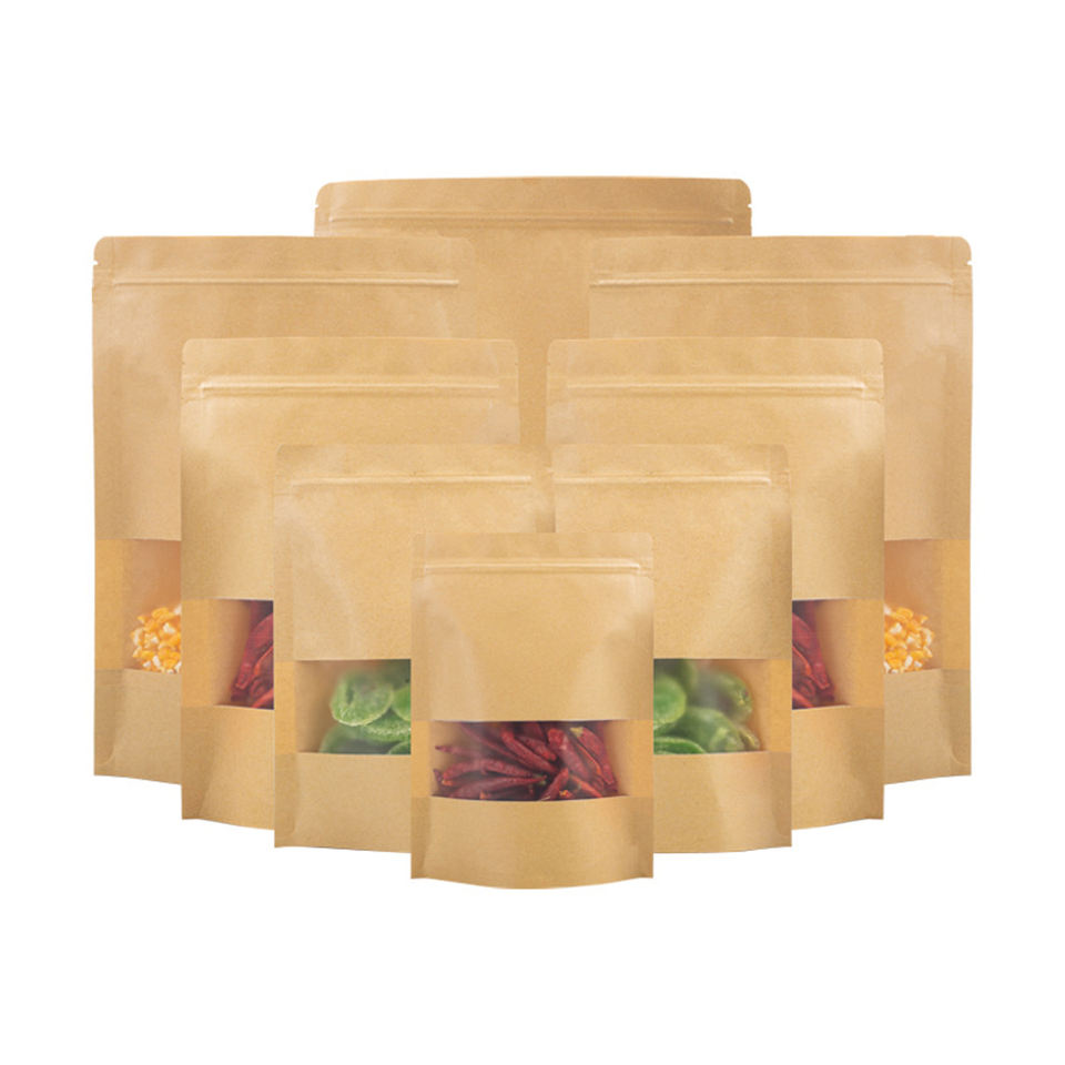 Custom Printed PE Plastic Zip Lock Kraft Paper Packaging Bag Plastic Food Grade Stand up Pouch with Clear Window Reusable Bag