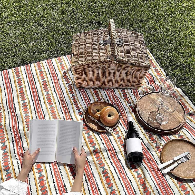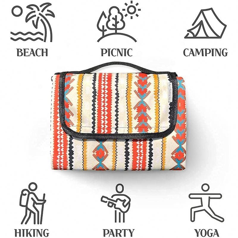 Custom Printed Recyclable Large Tote Outdoor Waterproof Sand Proof Coating Beach Picnic Blanket