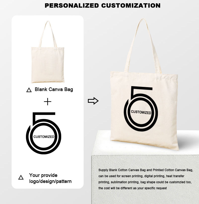 Custom Printed Recycled Large Canvas Tote Bag Portable Advertising Gift Bag With Logo Woven Reusable Shopping Grocery Tote