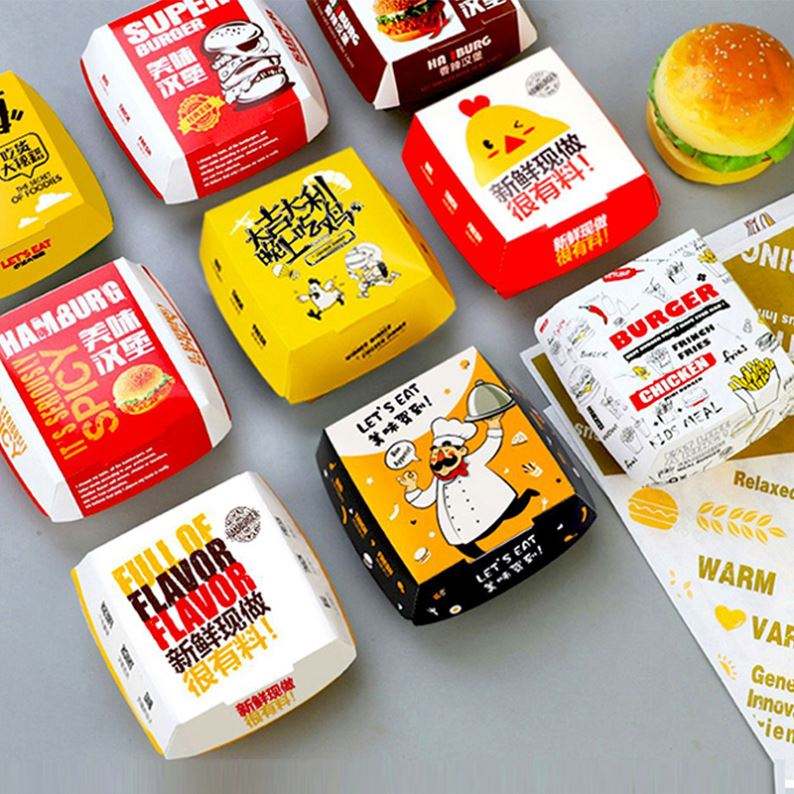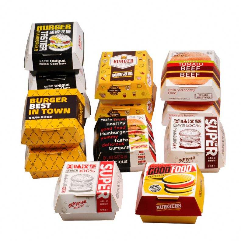 Custom Printed Recycled Take Away French Fries Paper Boxes Fast Food Burger Hamburger Packaging