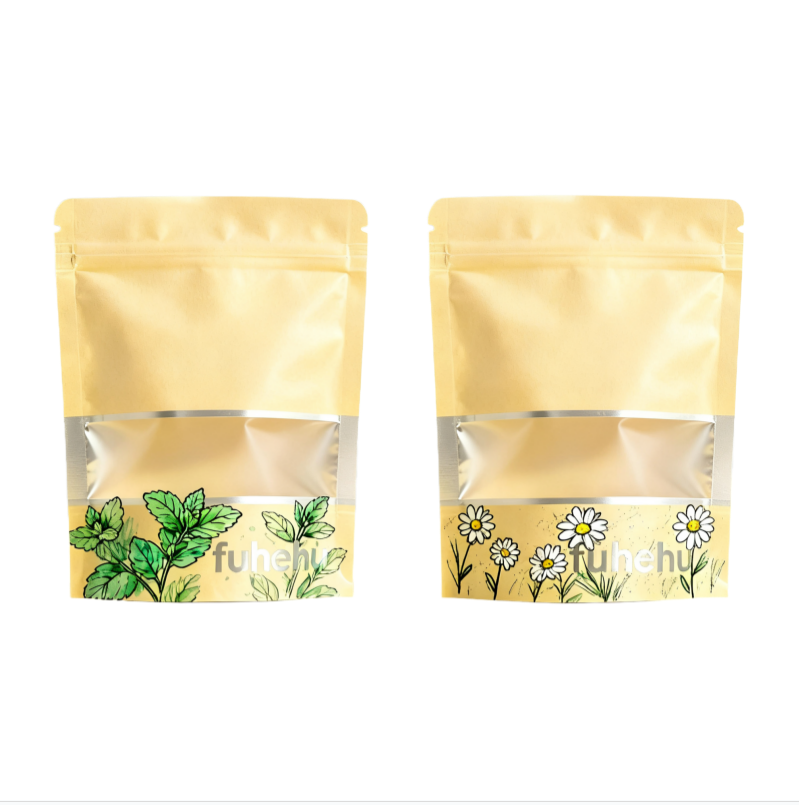 Custom Printed Resealable Ziplock Stand Pouch Food Grade Kraft Paper Packaging Mylar Window for Storing Cookie Candy Chewing Gum
