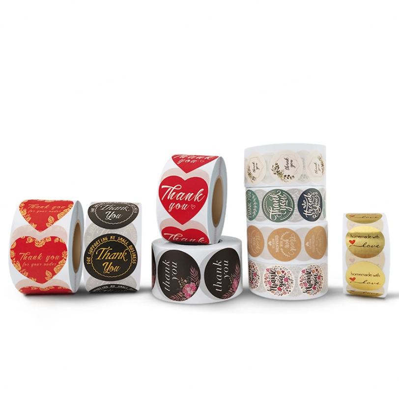 Custom Printed Roll Thank You Adhesive Paper Sticker Vinyl Label Stickers for Small Business Packaging
