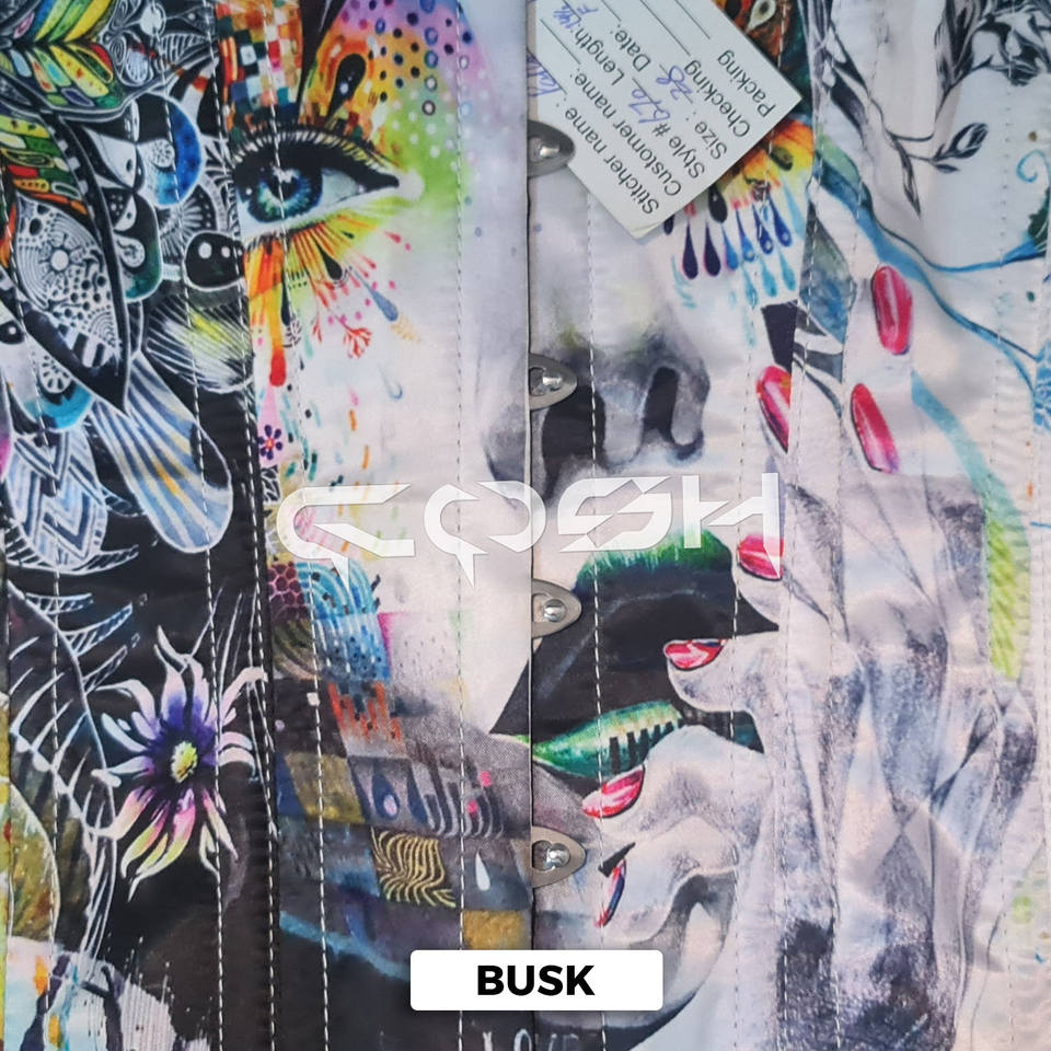 Design:Back laced up, busk closure