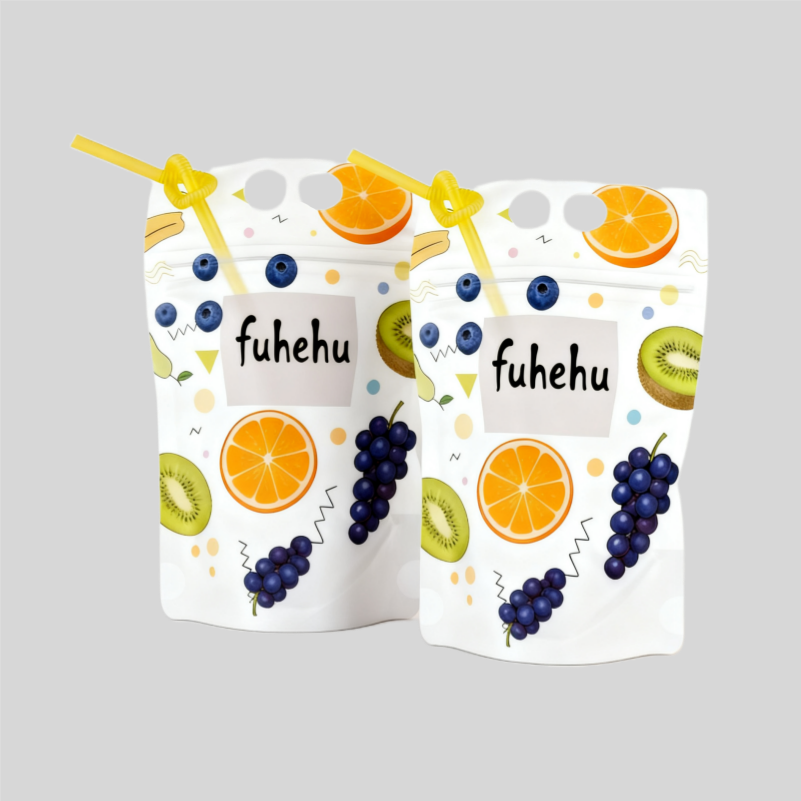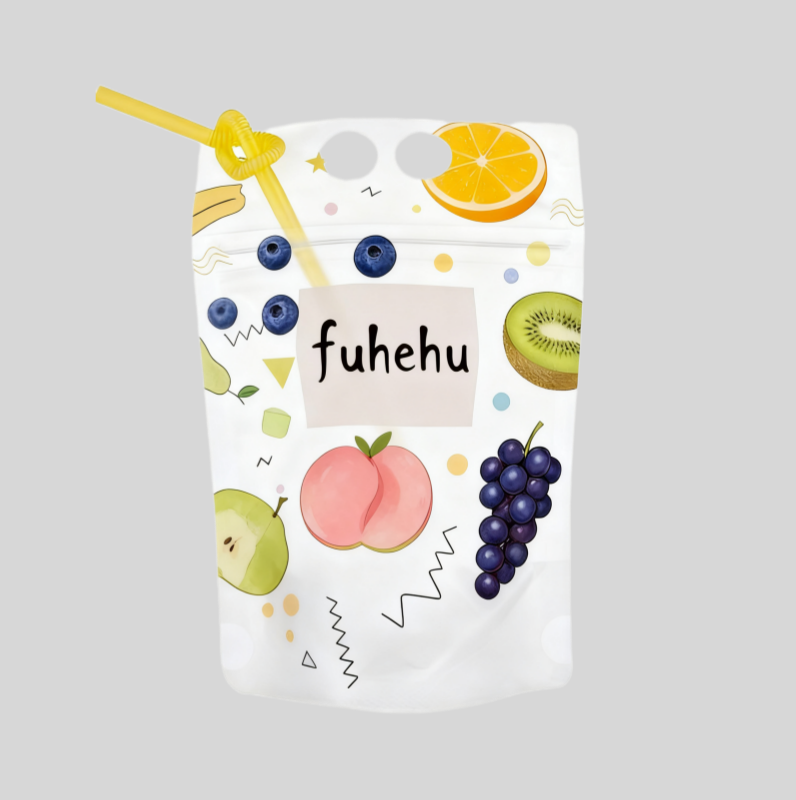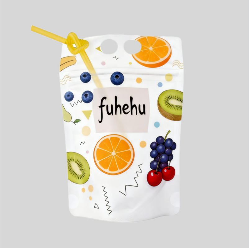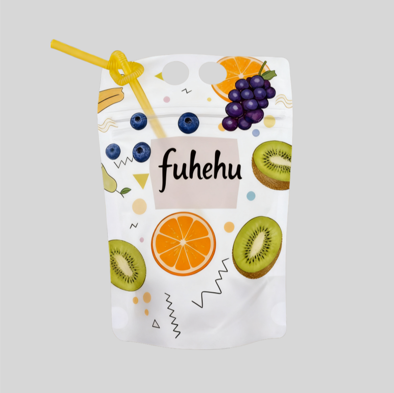Custom Printed Smoothie/Ice for Pop Pouch Bag Zipper Handle Juice Container Plastic Straw Frosted Stand-Up Beverage Plastic Bag