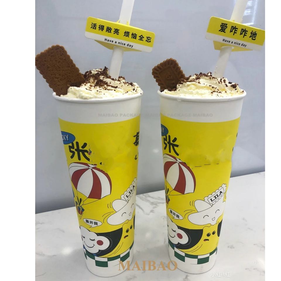 Custom Printed Take Away Disposable Mystery Blind Box Coffee Cups Surprise Box Boba Bubble Tea Paper Cups With Lids