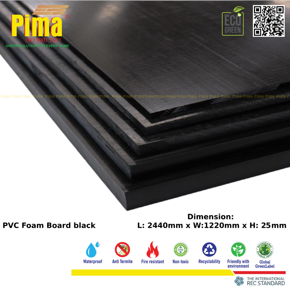Custom Printed WPC PVC Foam Board Sheet 25mm Thickness 0.6 G/cm3 Density Black Color for Kitchen Decoration Interior Advertising