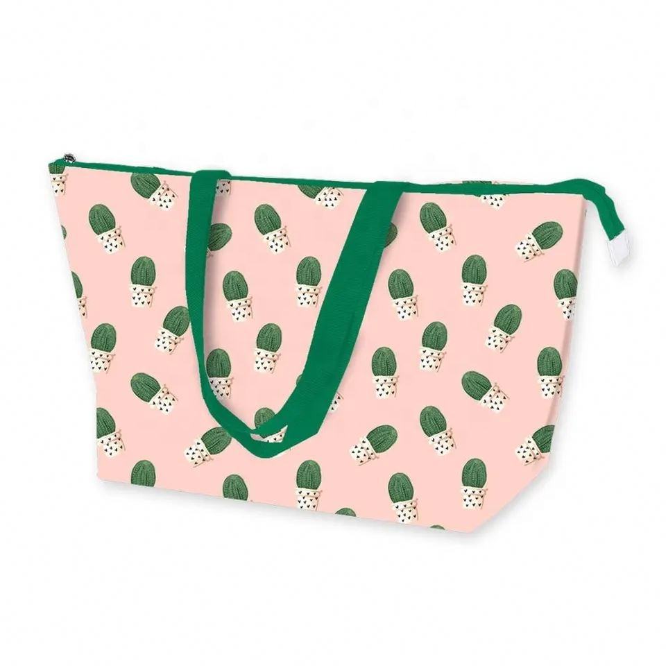 Custom Printed Waterproof Foldable Cute Fresh Patterned Polyester Tote Beach Bags Summer Autumn Spring Beach Outings Bulk Order
