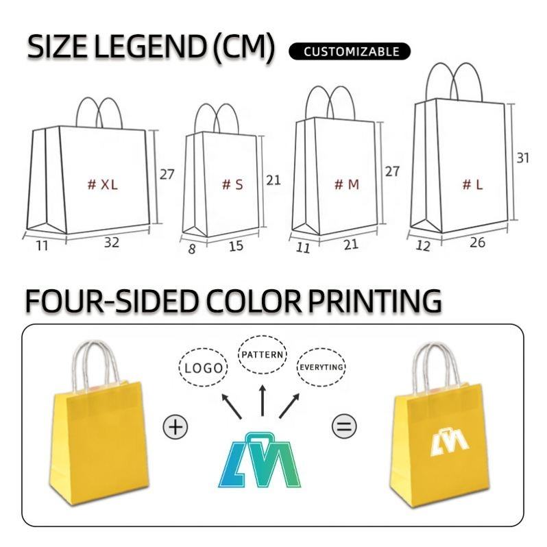 Custom Printed White Kraft Paper Bag with Colorful Handle Recycled Material Printed Shopping Sacolas De Papel Letter Pattern