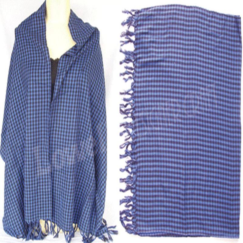Custom Printed Women's Summer Square Scarf Double-Sided Long Head Scarf Tassel Fringe Twill Check Pattern 100% Cotton Digital