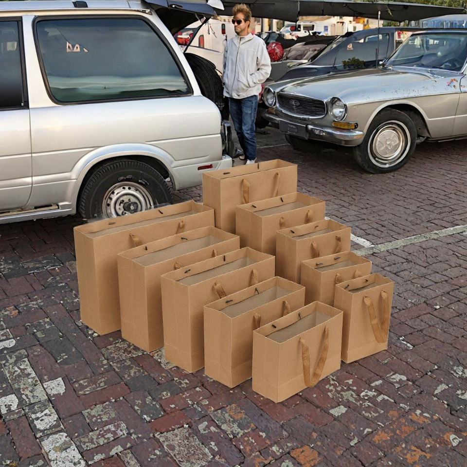 Custom Printed Your Own Logo Black White Brown Kraft Recyclable Gift Craft Shopping Paper Bag with Hand Length Handle