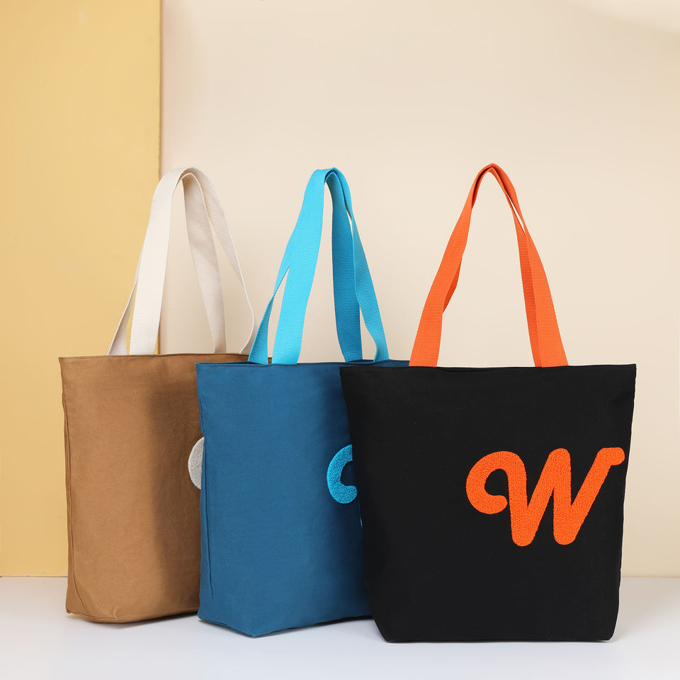 Custom Printing Canvas Grocery Bags with Long Strap Tote Bag Reusable Bag with Pocket and Zipper Printed logo for Student