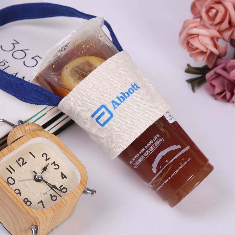 Custom Printing Design Creative Handmade Fabric Knitting Tote Coffee Sleeve Holder Bag Wrap Cotton Canvas Coffee Cup Carrier