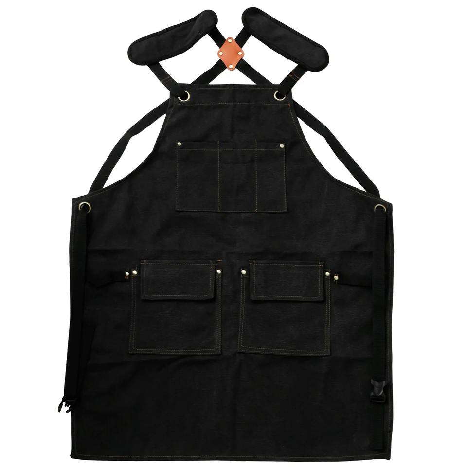 Custom Printed Cotton Canvas Black Apron Embroidered Logo Water-Resistant Summer Sleeveless Outing BBQ Reusable
